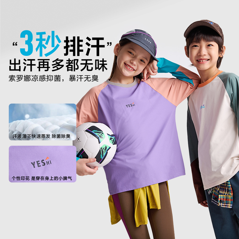 秋季 儿童圆领长袖 咕噜日记童装 男女童撞色T恤休闲上衣 亲子款