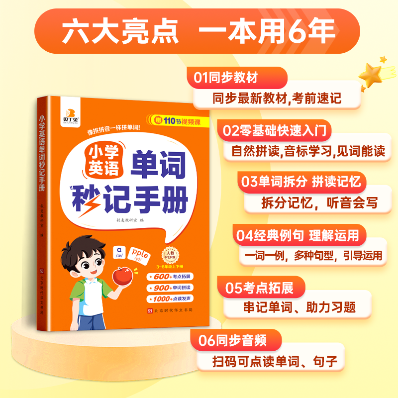 贝丁兔2025新版 教材入门自学零基础汇总表训练拆分拼读课本拼音 小学英语单词秒记手册小学生三年级上册四五六年级单词书同步人教版