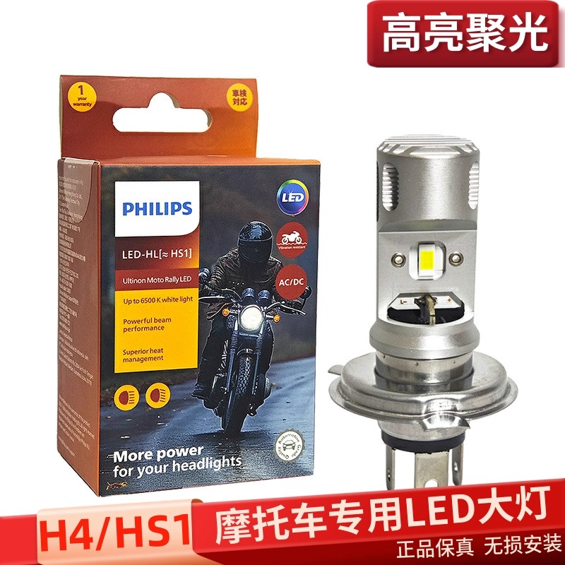 飞利浦摩托车LED大灯HS1适配赛艇GSX250黄龙600三爪远近一体灯泡