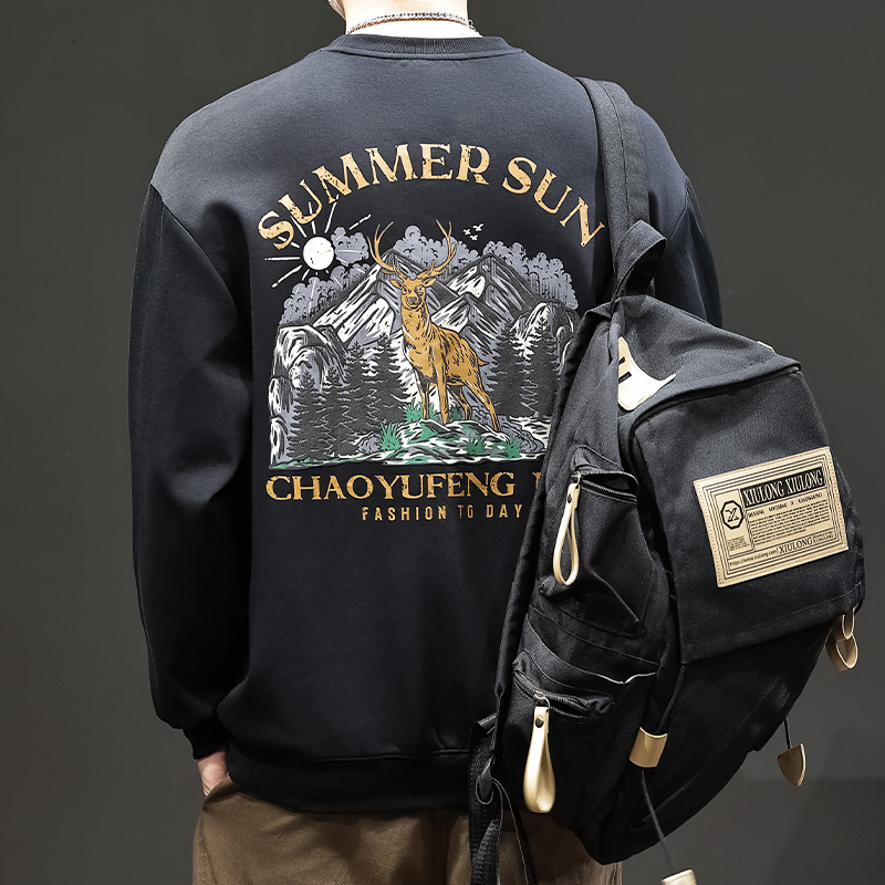 抓绒宽松运动卫衣122 AF经典 美式 25秋冬新款 5541 小麋鹿图案男装