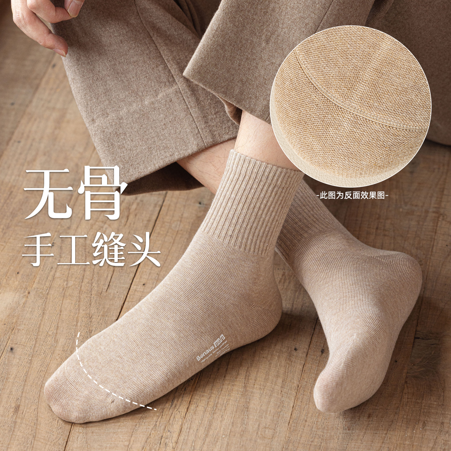 棉伙棉伴海藻袜舒适抗菌防臭男女商务运动纯色裸感中筒袜