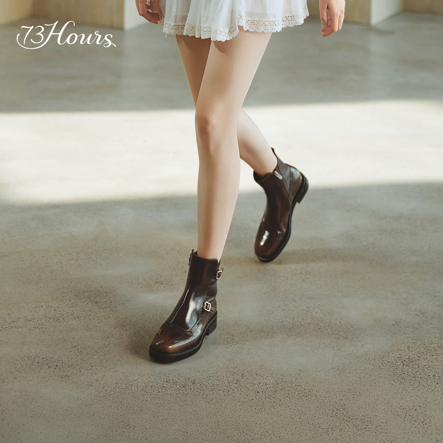 复古切尔西靴英伦风靴子粗跟短靴 新款 73hours女鞋 邦德街2025冬季