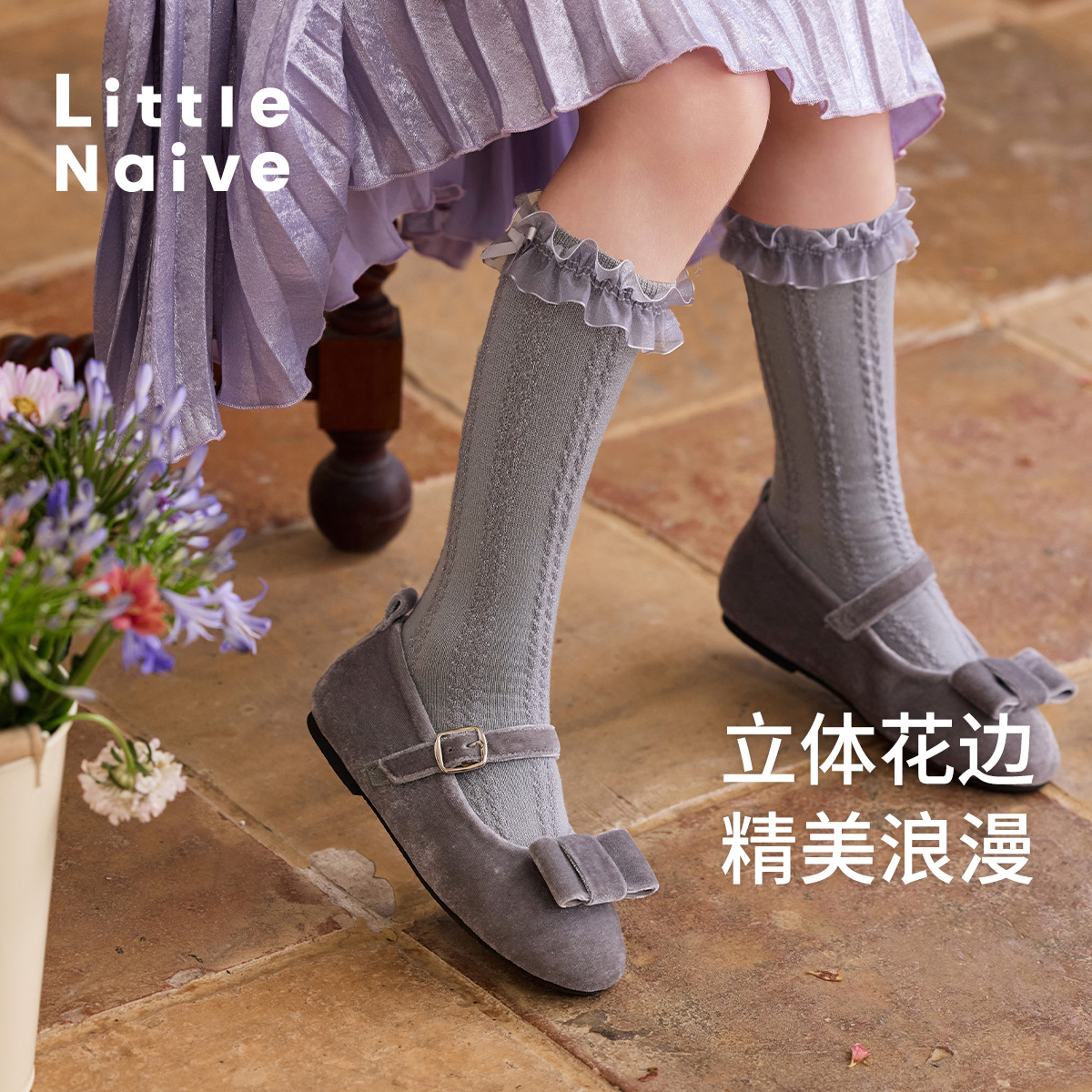 Little 银丝透气儿童抗菌弹力小腿袜 Naive女童花边中筒袜春秋款