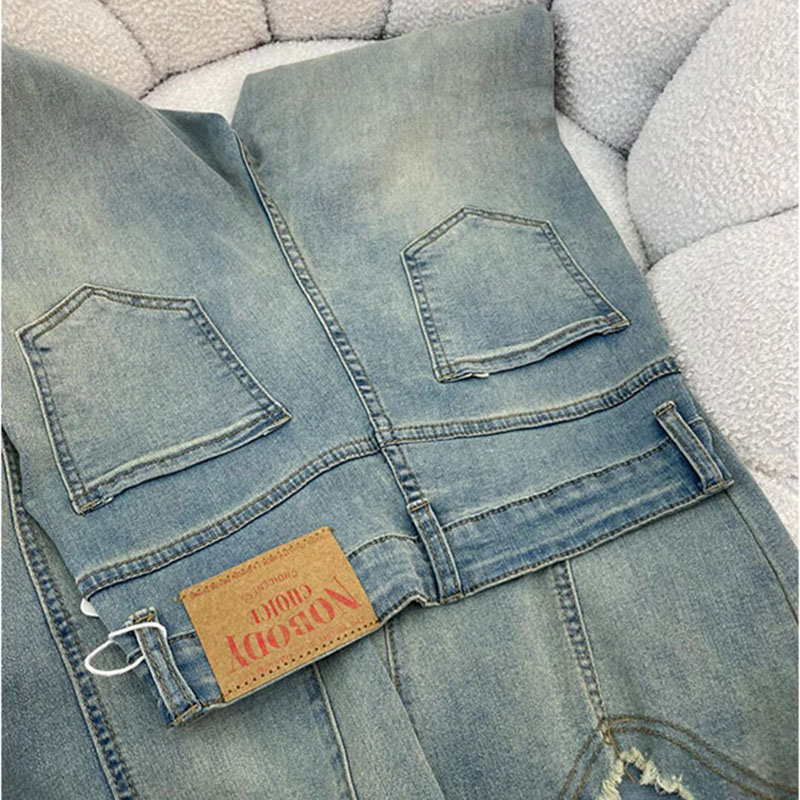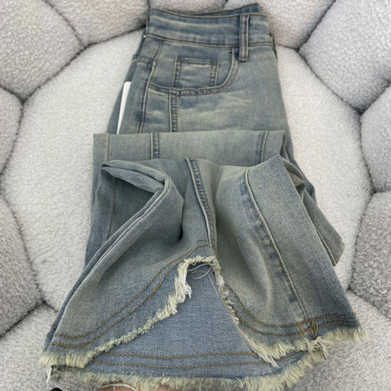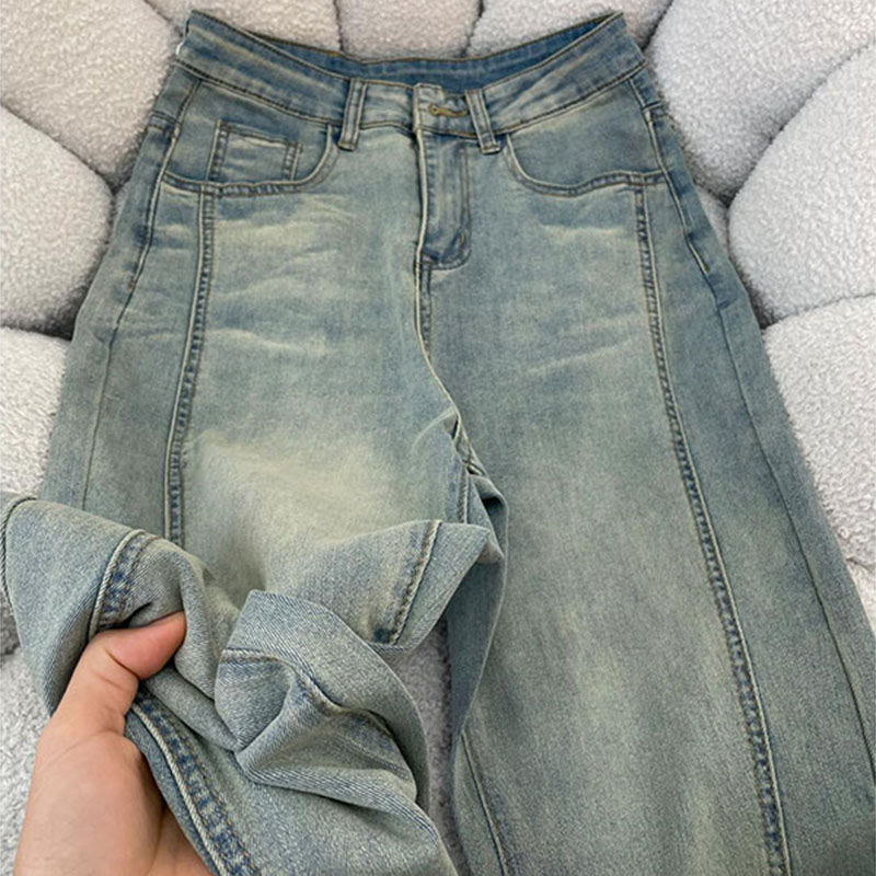 高个子加长裤 胖mm高腰显瘦开叉直筒裤 子女 女大码 浅蓝色微喇牛仔裤