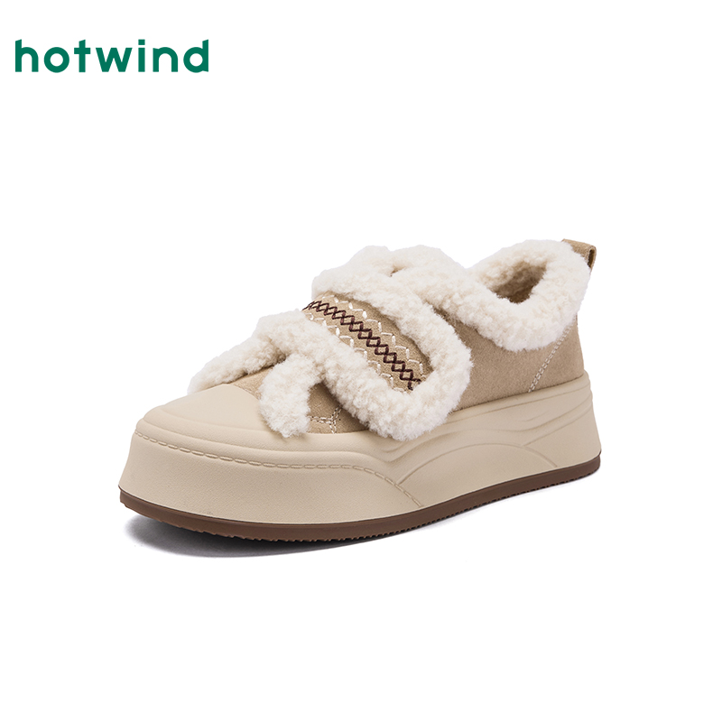女2025年冬季 魔术贴女棉鞋 新款 增高板鞋 加绒休闲鞋 热风厚底毛毛鞋