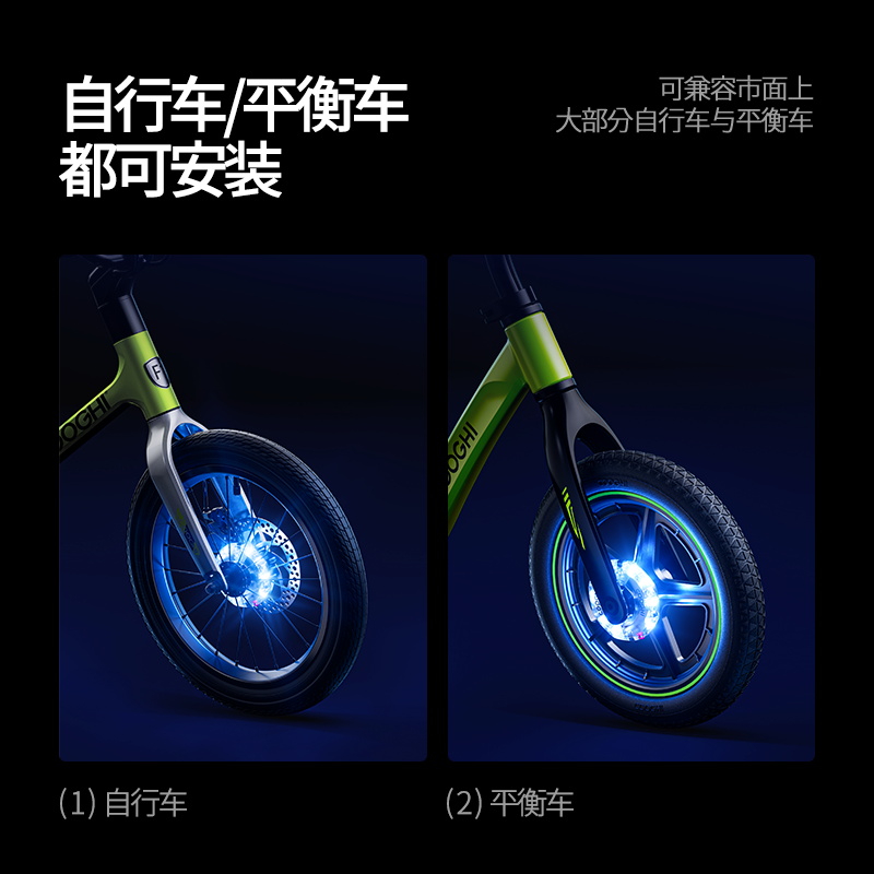 酷骑自行车平衡车花鼓灯夜骑智能感应炫彩风火轮警示灯usb充电