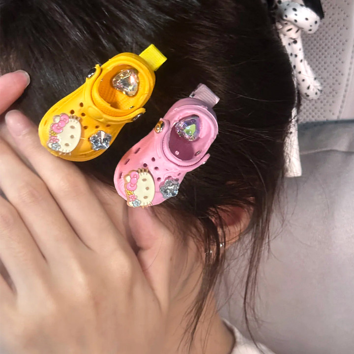 可爱猫咪水钻洞洞鞋 创意侧边刘海鸭嘴夹发卡头饰 立体发夹2025新款