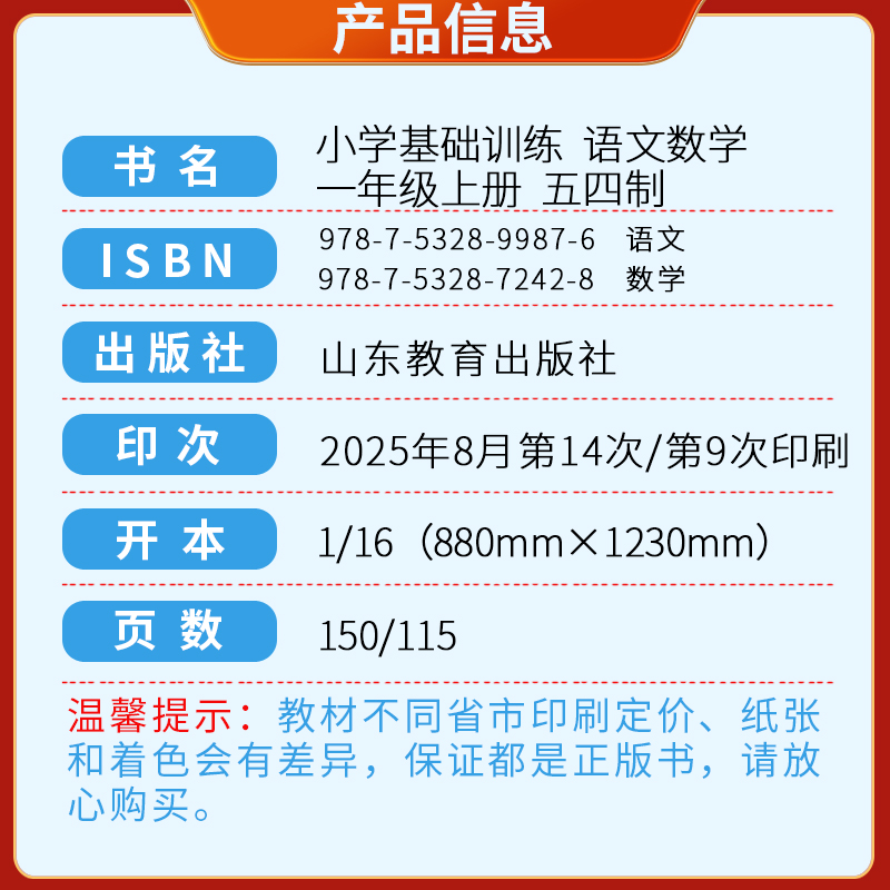 社伴你学习新课程丛书 54五四制山东教育出版 2025秋新版 小学语文数学基础训练一年级上册