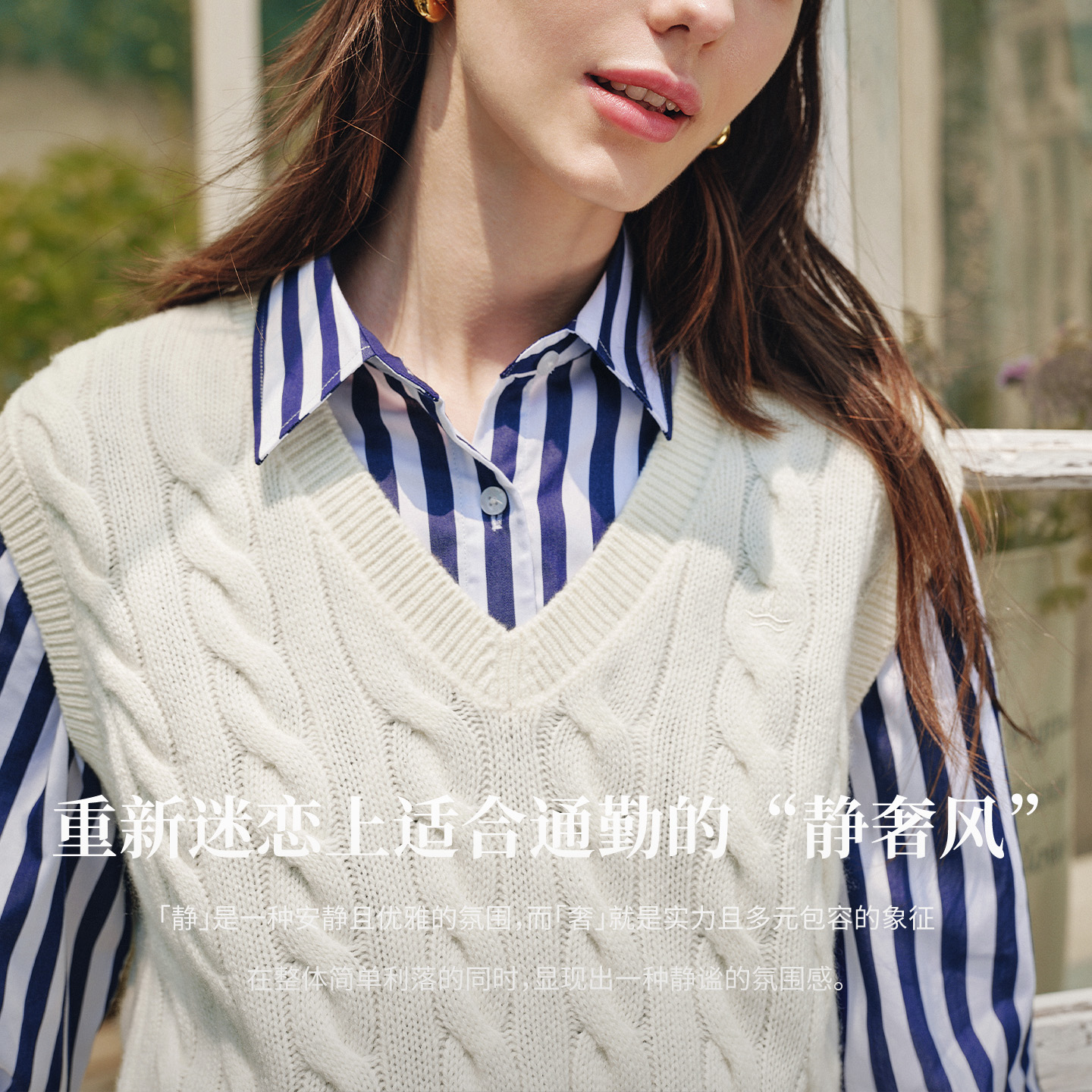 V领针织衫 新款 Navigare意大利小帆船毛衣女2025秋季 背心 纯羊毛