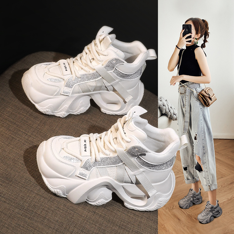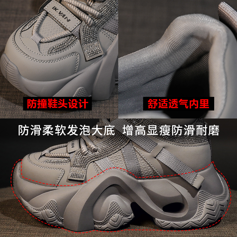 女款 休闲运动鞋 2025秋季 透气厚底小个子女鞋 子 新款 回力银色老爹鞋