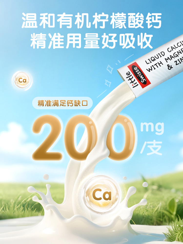 Swisse儿童液体钙镁锌补钙成长柠檬酸钙little小小斯维诗5条装 盒