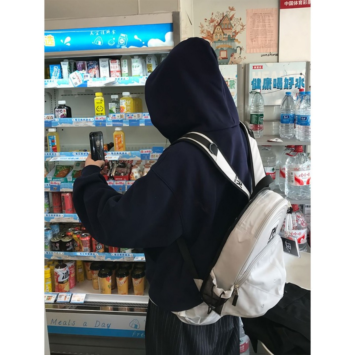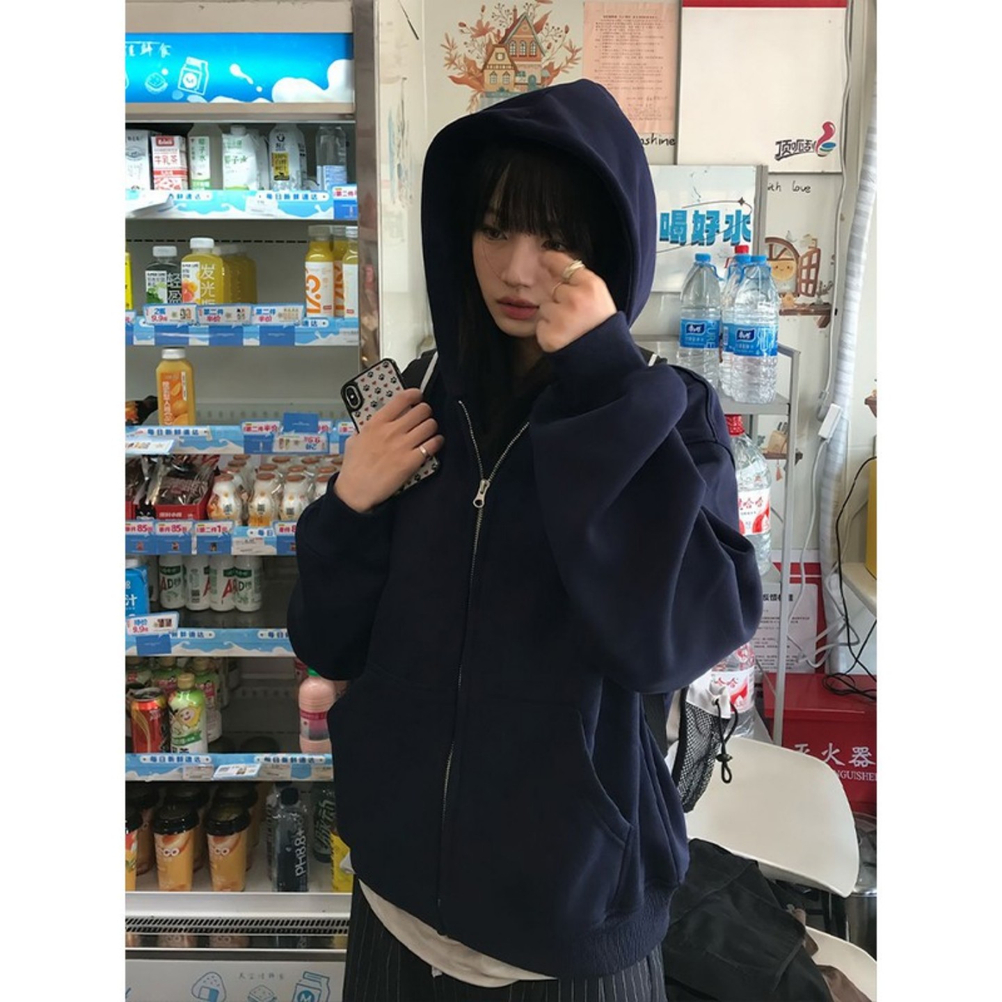 纯色正肩帽衫 美式 cleanfit情侣外套 秋季 藏青色重磅连帽卫衣男女款