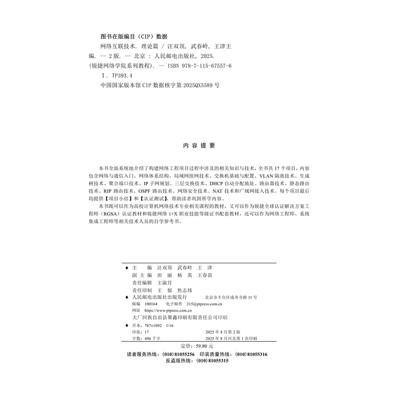 汪双顶 第2版 武春岭 王津大学教材人民邮电出版 网络互联技术 社新华书店正版 理论篇
