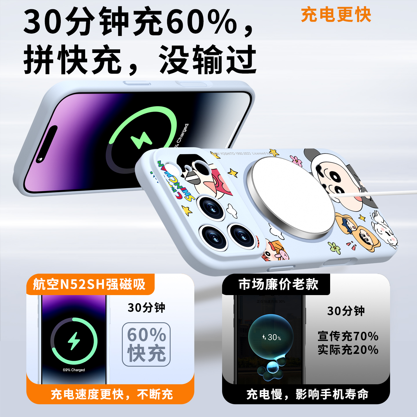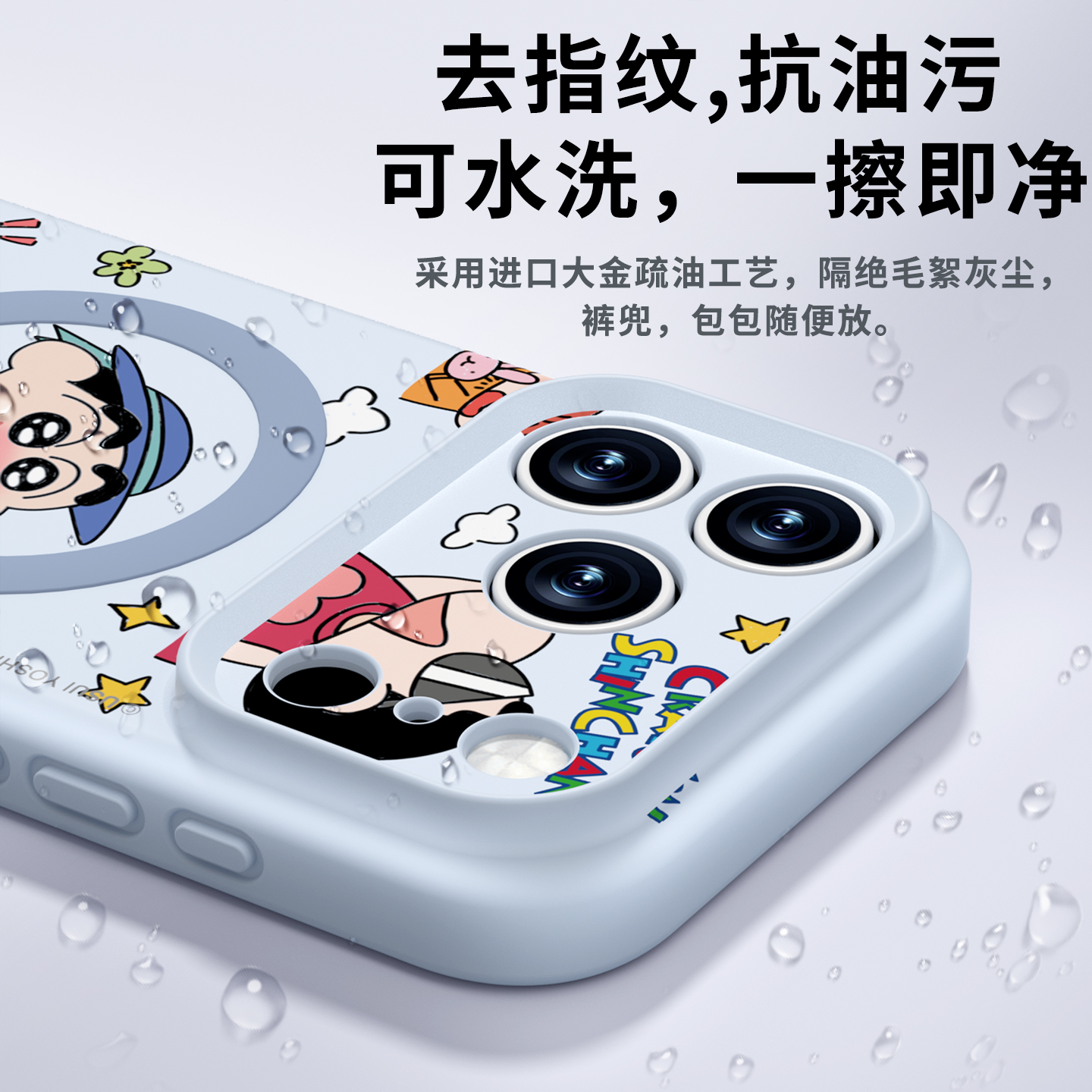 适用苹果17proMax手机壳磁吸iPhone17相机按键全包16pro蜡笔小新MagSafe新款 ip12 15液态硅胶14保护13防摔air