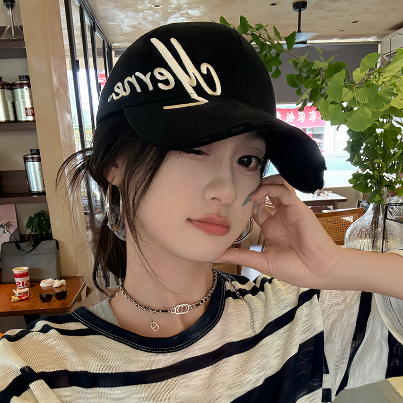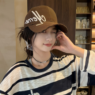2025新款 帽子女大头围刺绣棒球帽宽帽檐防晒显脸小潮牌硬顶鸭舌帽