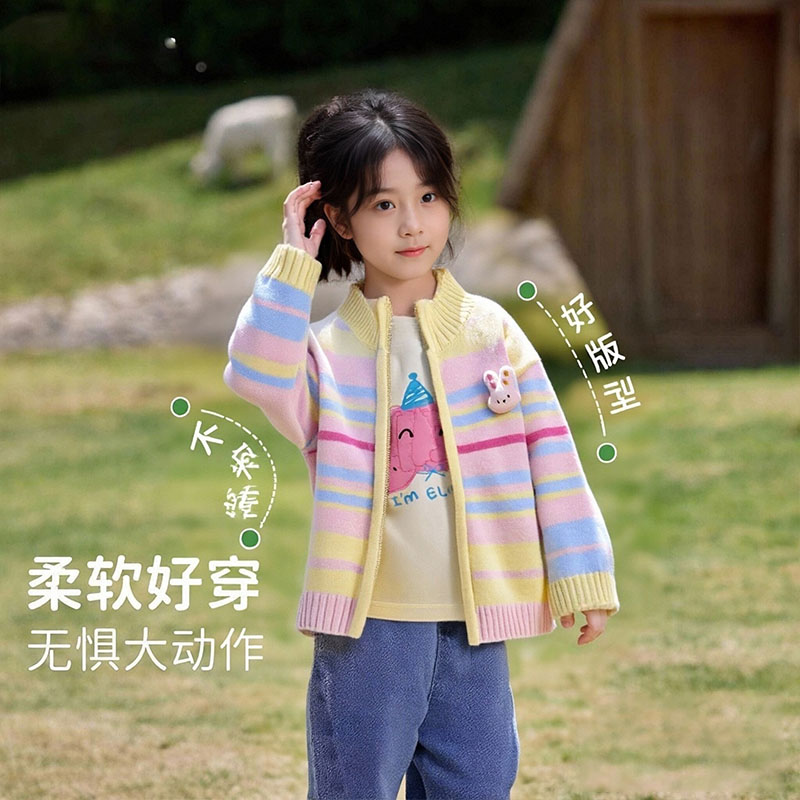 休闲复古感翻领针织衫 热风女士针织衫 新款 毛衣2025年秋季 拉链开衫