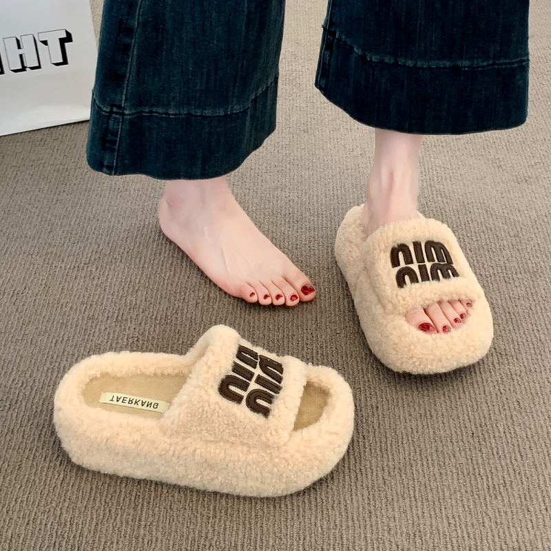 ins潮鞋 韩版 秋冬季 厚底棉拖鞋 潮 毛毛拖鞋 子春夏季 女外穿2025新款