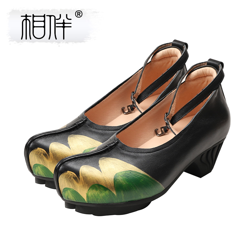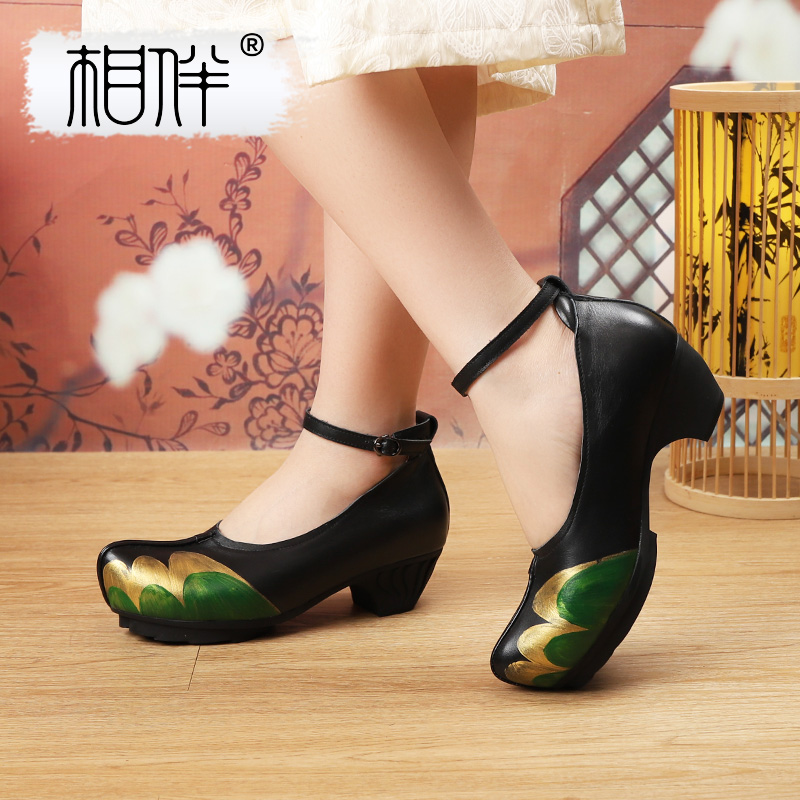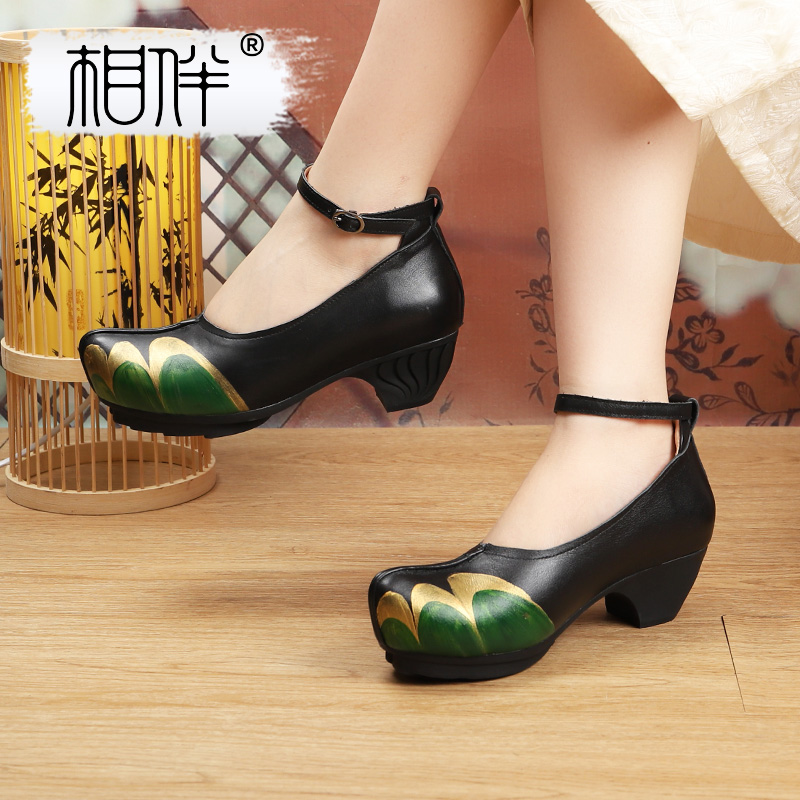 仙女风瓢鞋 秋季 浅口百搭中跟奶奶鞋 大码 真皮单鞋 女鞋 粗跟2025新款