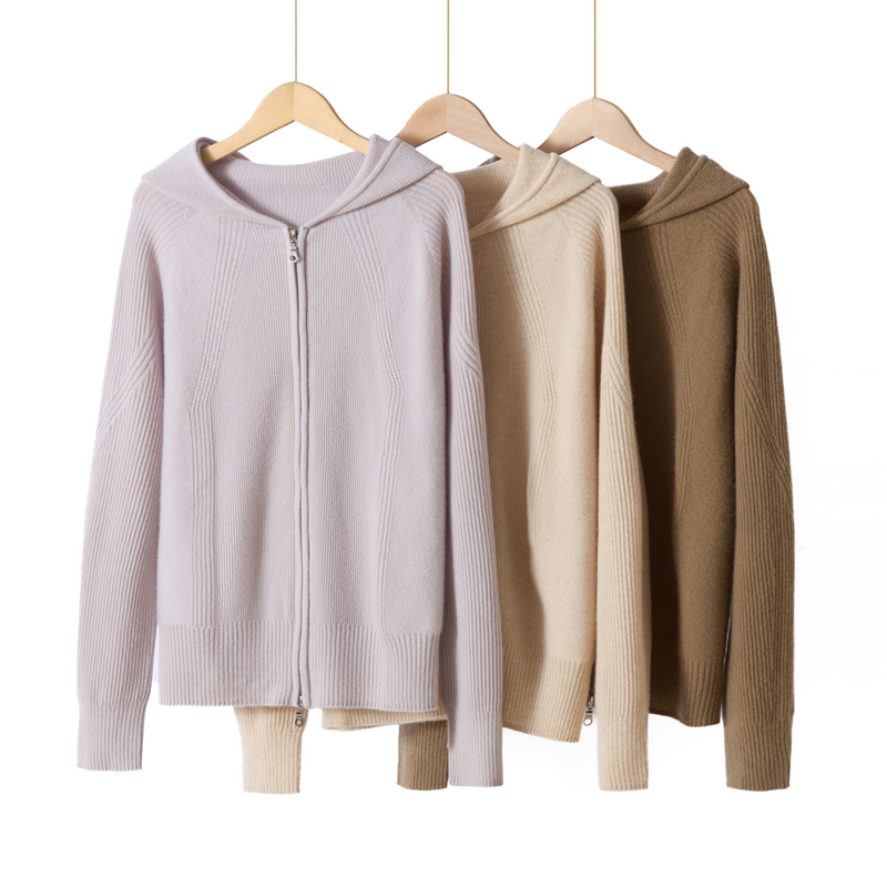 女士羊绒开衫 春竹100%山羊绒拉毛圆领合体舒适显瘦秋冬新款 长袖