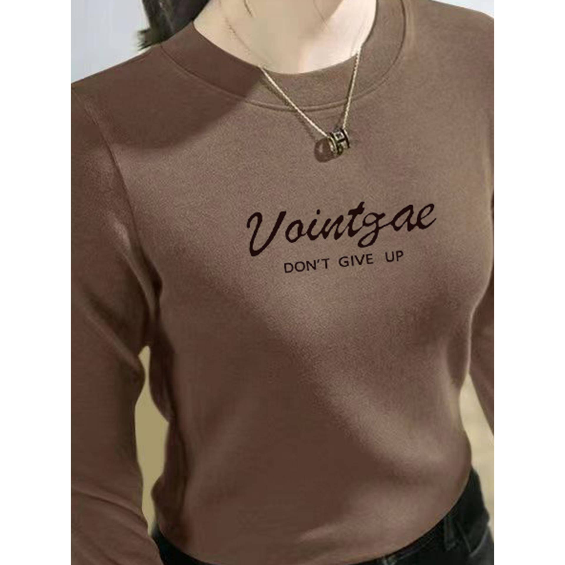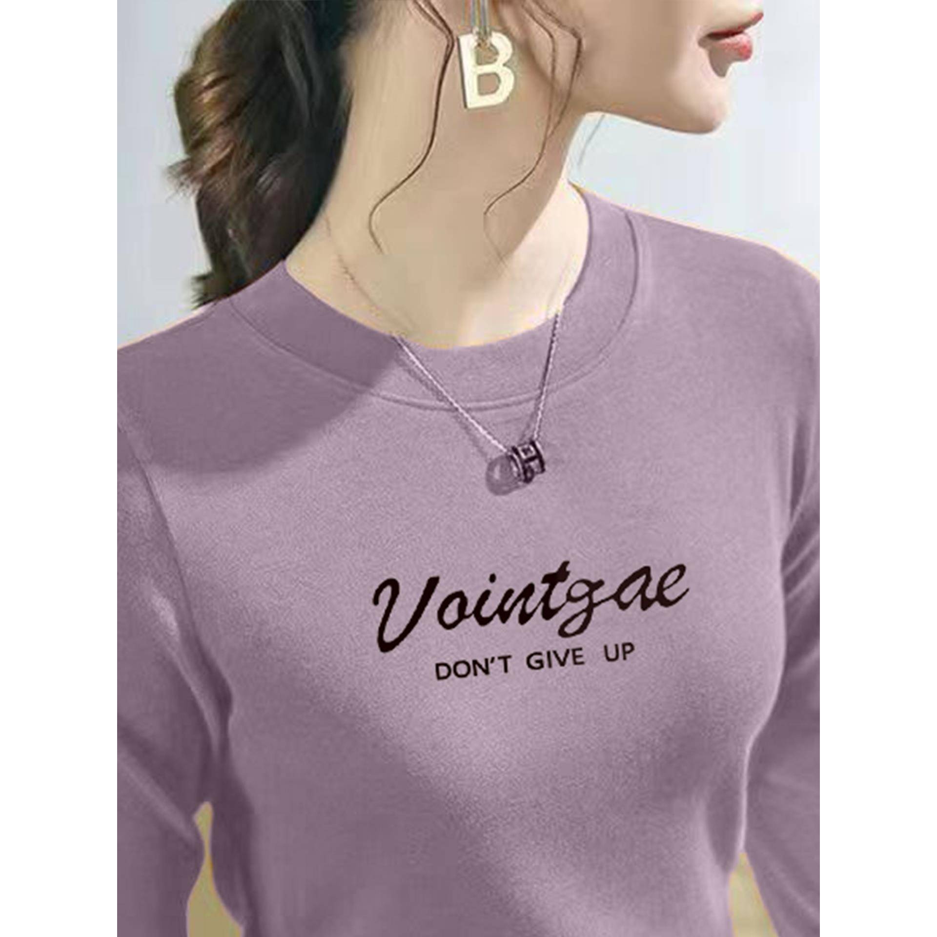 T恤上衣1018r 秋冬加绒磨毛印花正肩长袖 双面紫色打底衫 女2025新款