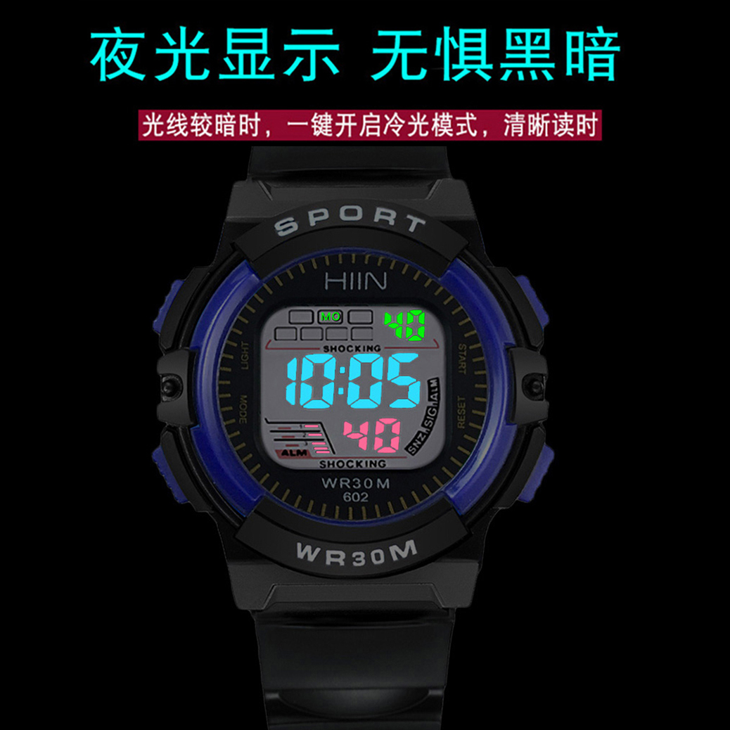 HIIN乐心迷彩运动电子表男孩防水夜光多功能女中小学生表儿童手表
