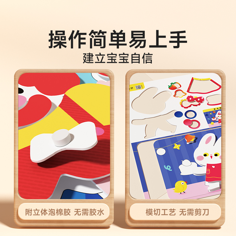时光学儿童手工DIY益智立体贴贴画幼儿园3d制作材料创意贴纸操作简单原创款 萌趣设计幼儿园益智玩具男女孩无需剪刀立体反复粘贴