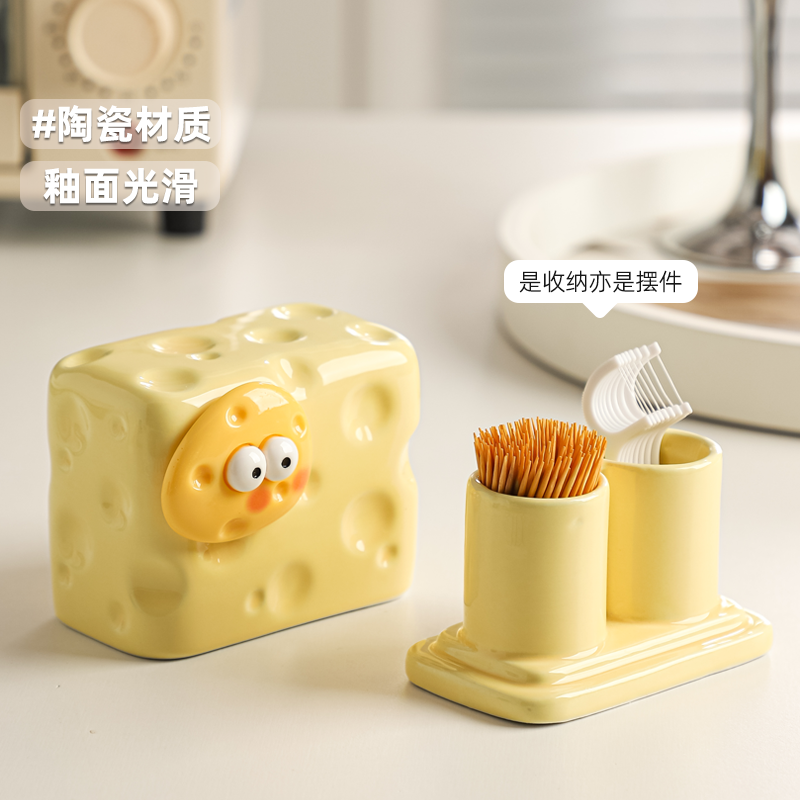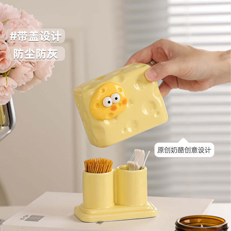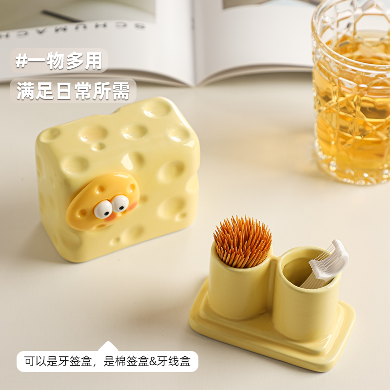 创意奶酪牙签盒家用2025新款 高档牙签牙线二合一高颜值棉签收纳盒