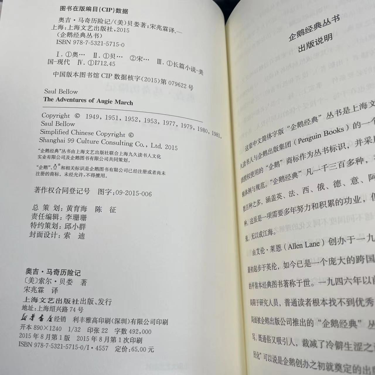 9787532157150上海文艺 精装 T企鹅经典 丛书:奥吉.马奇历险记
