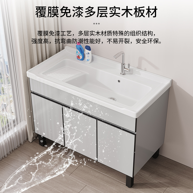 阳台多层实木洗衣池洗衣槽家用台池盆带搓板一体室外庭院石英石盆
