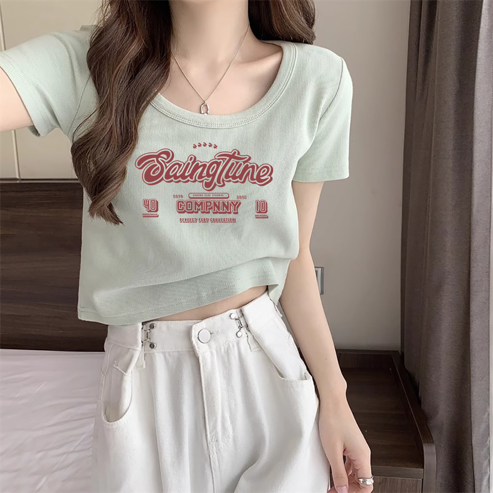 甜辣正肩低领露锁骨短款 2025新款 内搭上衣 T恤女夏季 纯欲风U领短袖