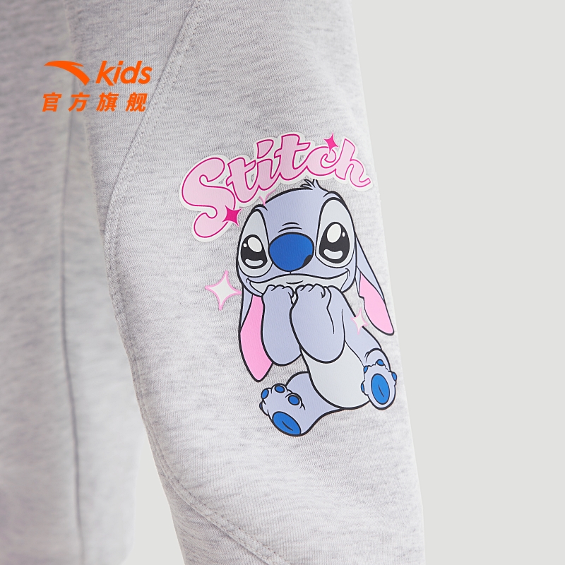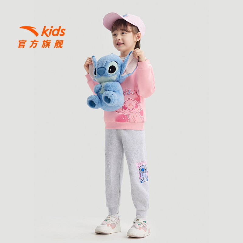 粉色萌趣裤 2025春秋新款 子 史迪奇IP运动裤 安踏儿童女小童休闲裤