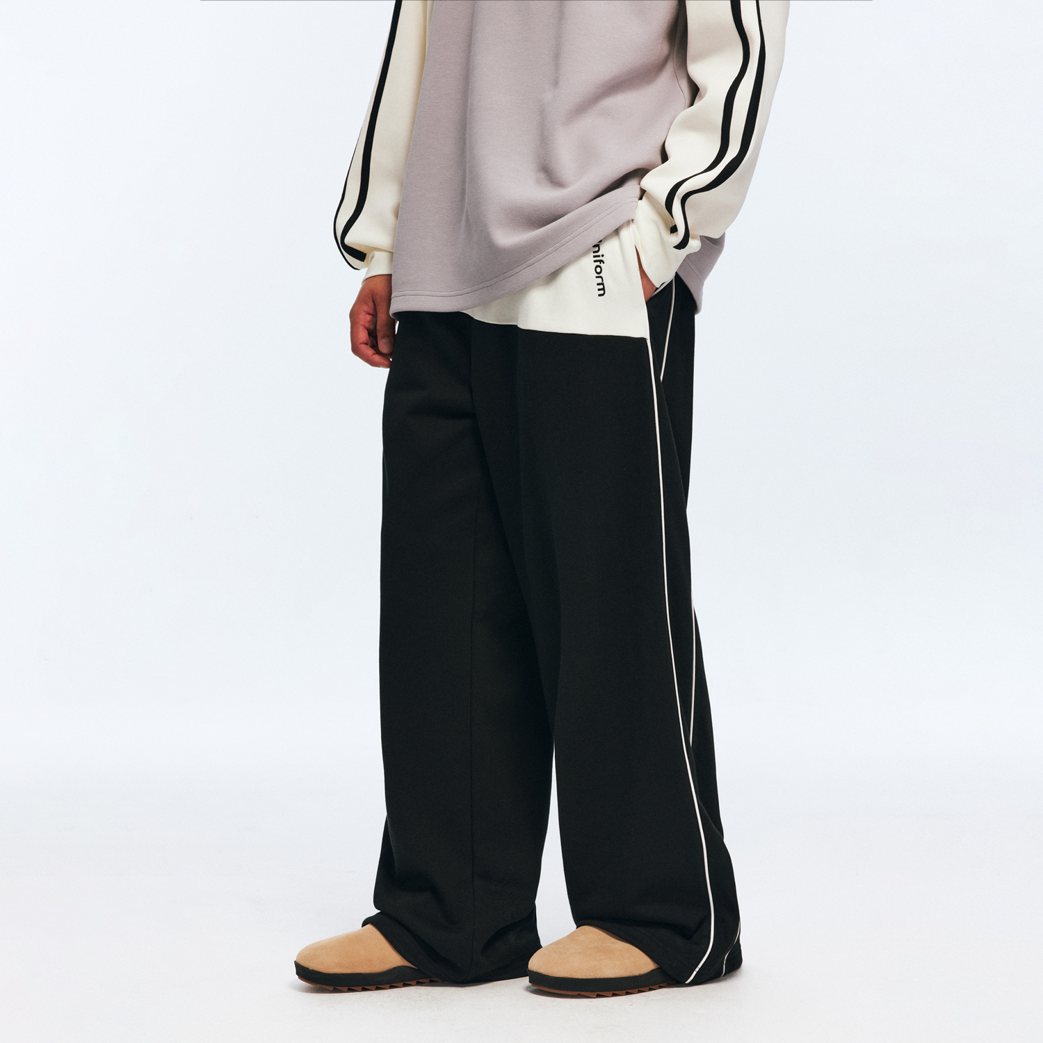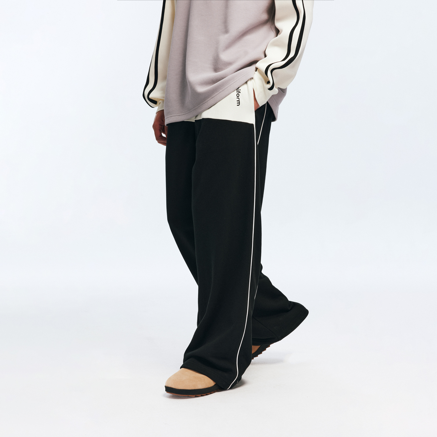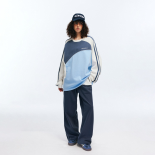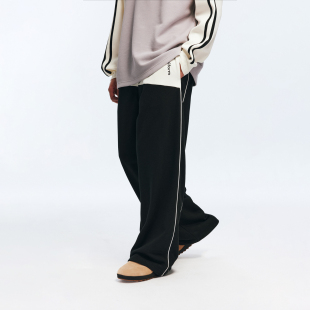 RASS针织拼接叽边运动长裤 子 国潮牌潮流阔腿宽松直筒情侣休闲裤
