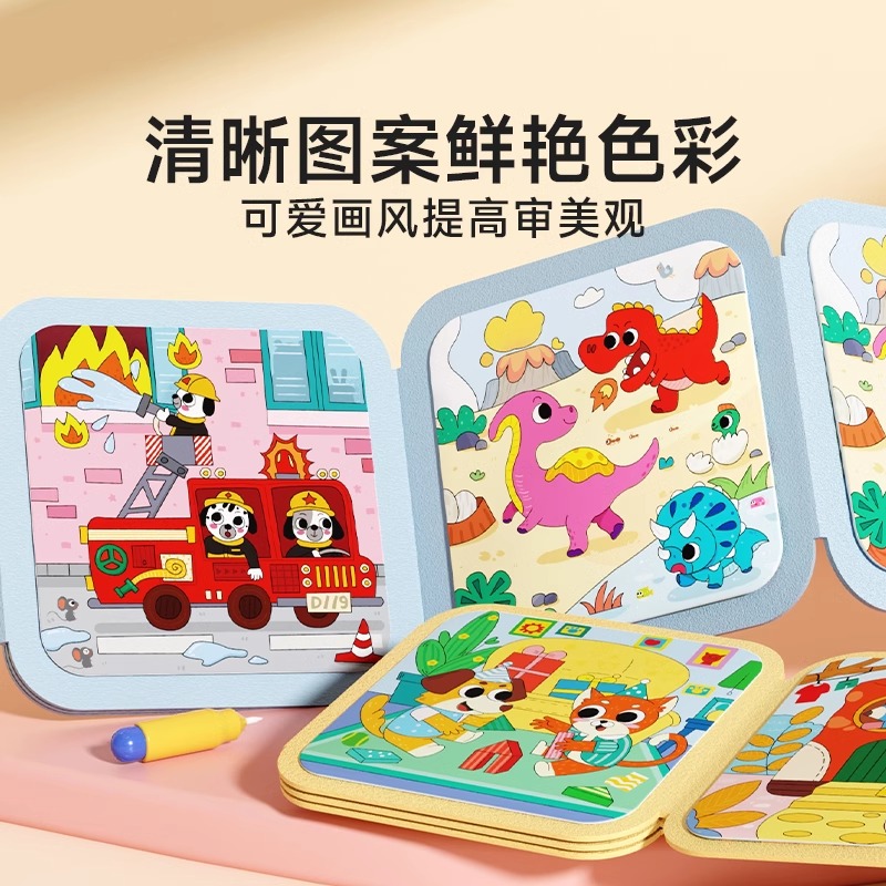 时光学儿童神奇水画本儿童涂色绘本幼儿园动物世界童话王国水彩画笔涂鸦绘画填色本图画册清水涂色绘画反复涂鸦书宝宝益智玩具