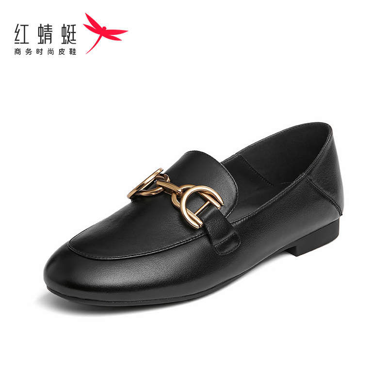 女WFB31372 一脚蹬真皮柔软轻便通勤皮鞋 REDDRAGONFLY 红蜻蜓春季