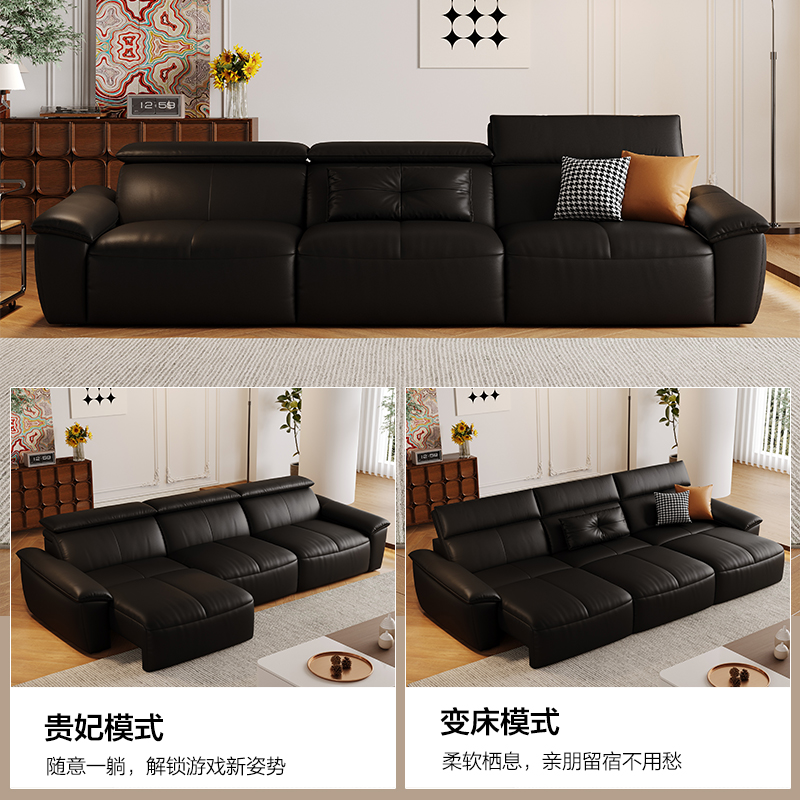 现代简约电动沙发床两用智能遥控客厅小户型伸缩折叠直排真皮沙发