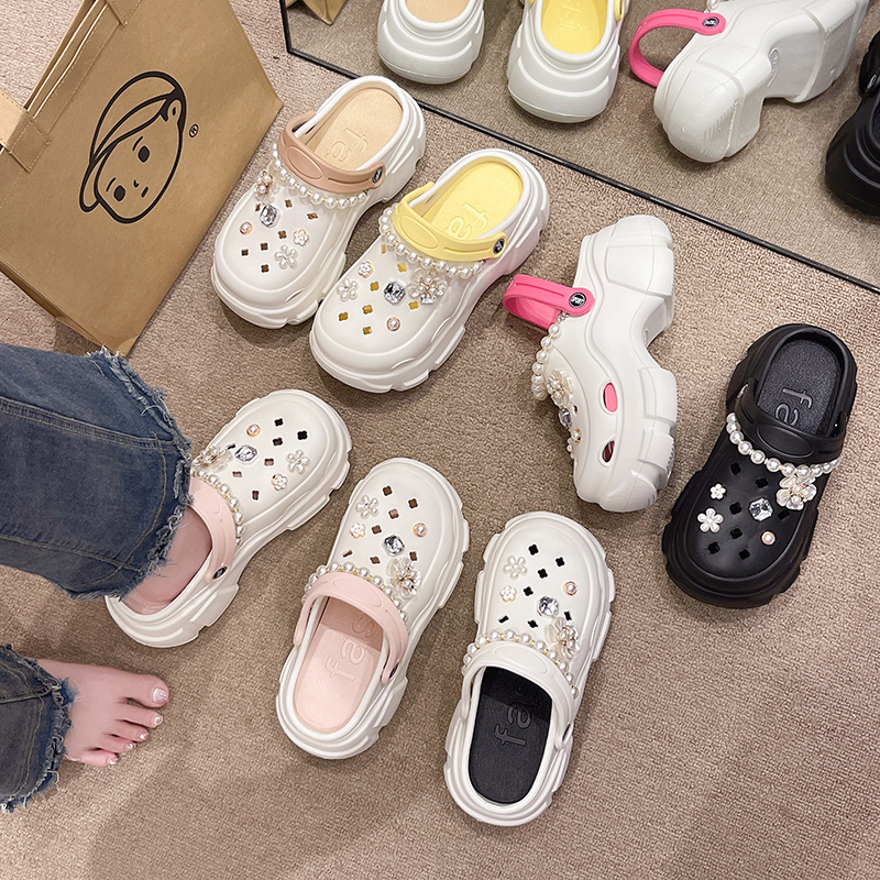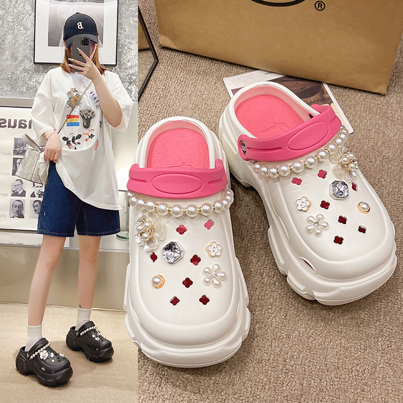 女2025新款 拖鞋 夏季 凉鞋 女士白 外穿厚底增高防滑防臭沙滩鞋 洞洞鞋