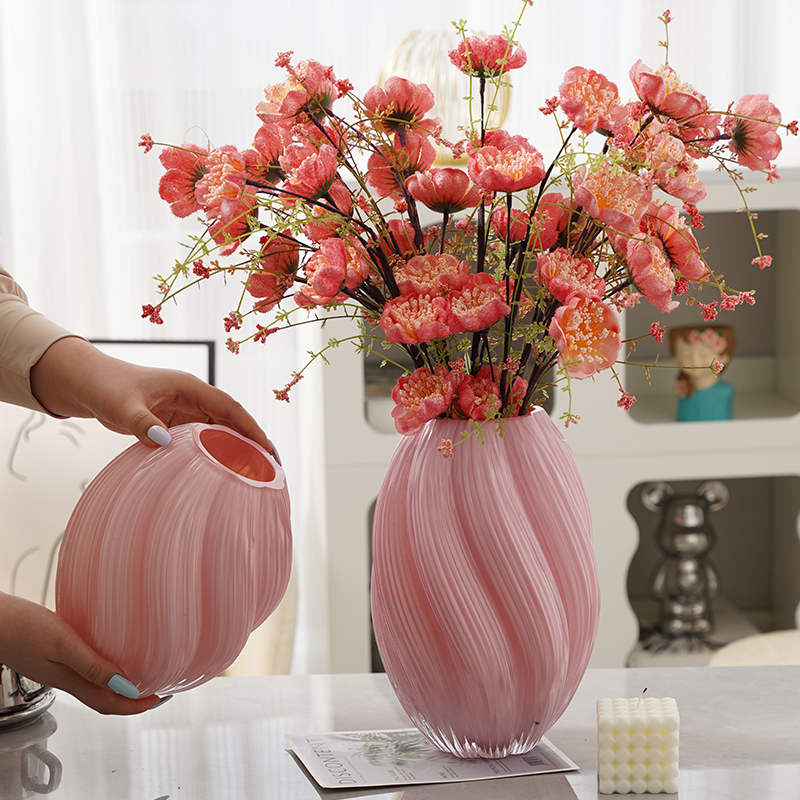 创意法式 饰品 粉色玻璃花瓶摆件客厅插花水养鲜花轻奢高级感小众装
