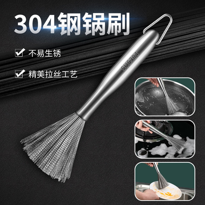 德国高级不锈钢清洁锅刷304长柄刷锅神器厨房专用钢丝刷洗锅刷子