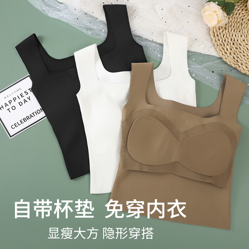 外穿打底无袖 内搭带胸垫遮副乳修身 上衣 薄款 棉吊带背心女春夏季