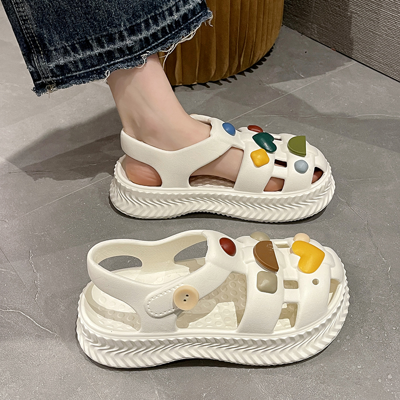 彩色石踩屎感厚底沙滩防滑罗马凉鞋 洞洞鞋 时尚 外穿2025新款 女夏季
