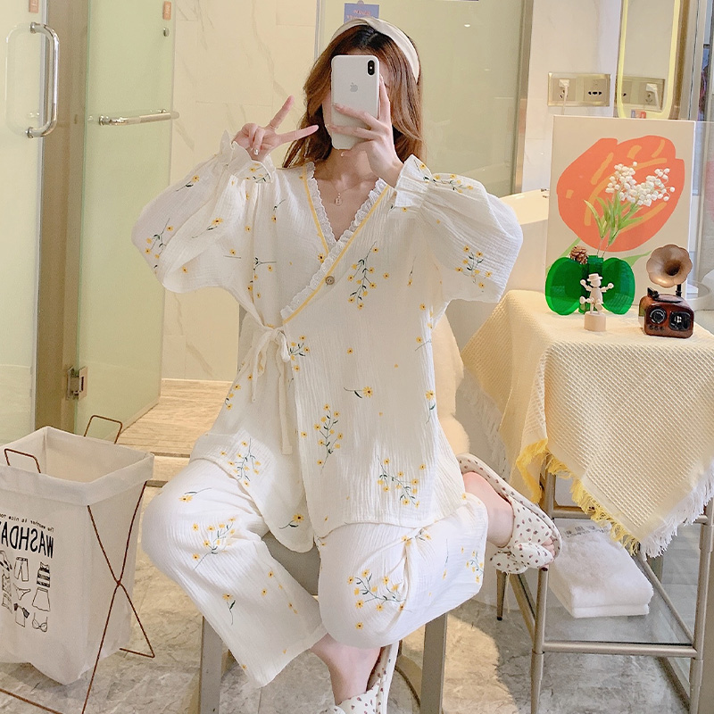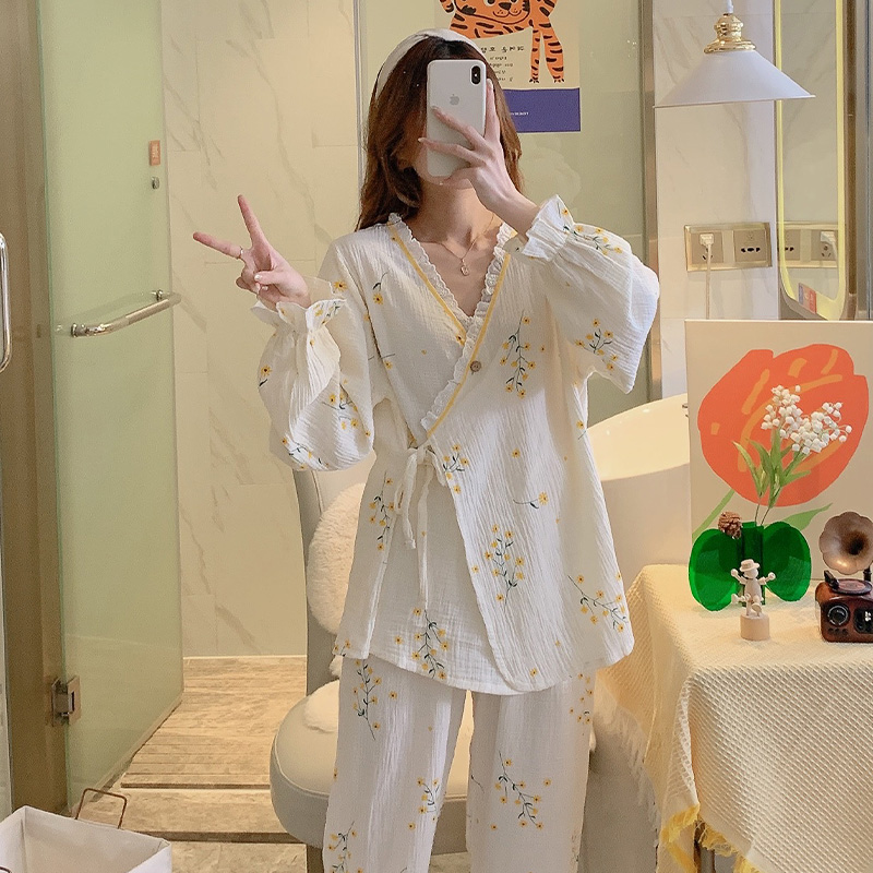 月子服春秋产后棉纱和服哺乳产妇怀孕期待产孕妇睡衣女薄款 家居服
