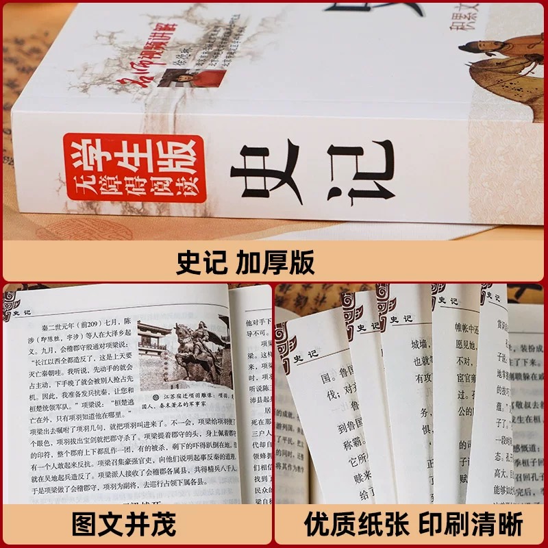 历史著作文学名作中国通史青少版 官方正版 厚本中小学生课外阅读书 无障碍阅读学生版 文史知识阅读中国历史中国古代史名著 史记