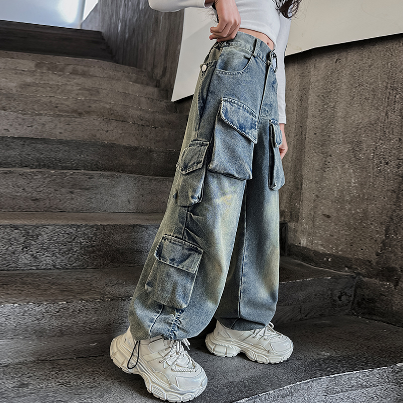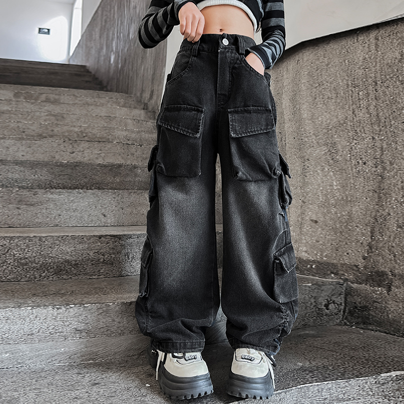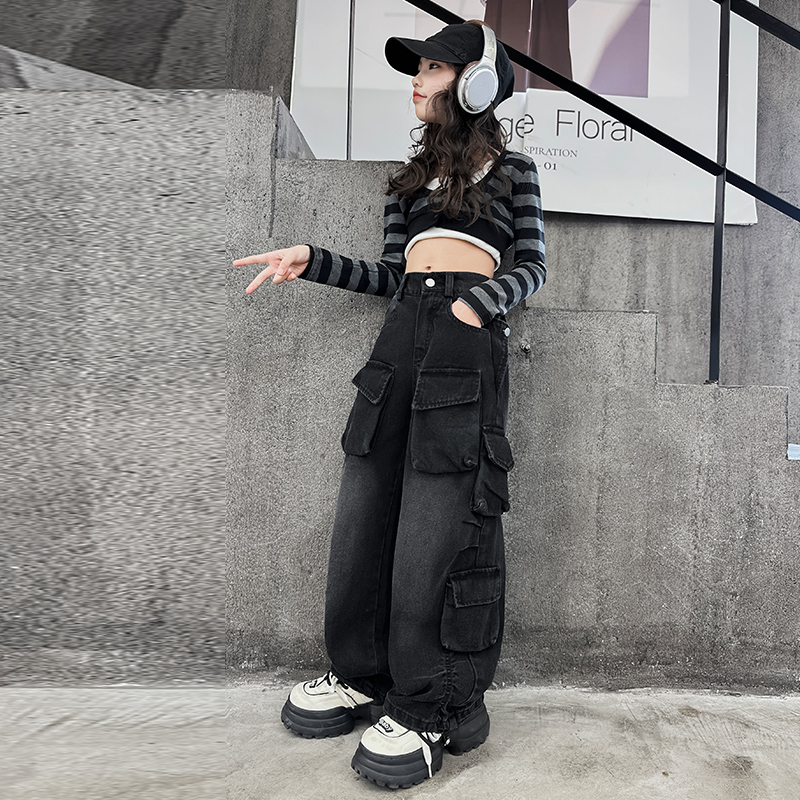 裤 爵士裤 秋装 女童裤 长裤 潮酷街舞服儿童工装 黑色大童牛仔裤 子秋季