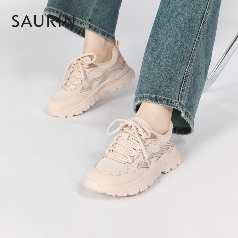 2025秋季 骆驼女鞋 新款 休闲透气老爹鞋 女 厚底增高银色运动鞋 银熠