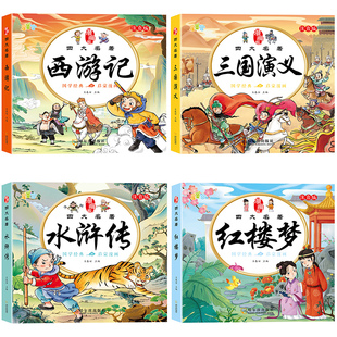 小学生漫画版 全4册彩图注音版 西游记三国演义水浒传红楼梦绘本漫画书一二三年级连环画课外阅读故事书籍 四大名著连环画正版 儿童版