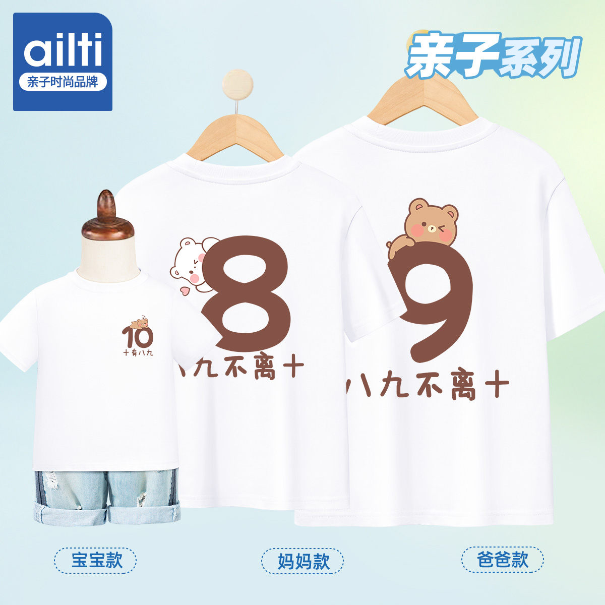 一家三口四口出游炸街母女短袖 高级感母子亲子装 半袖 新款 T恤 夏装
