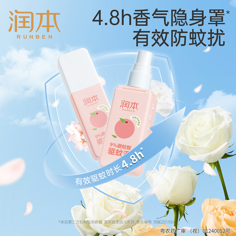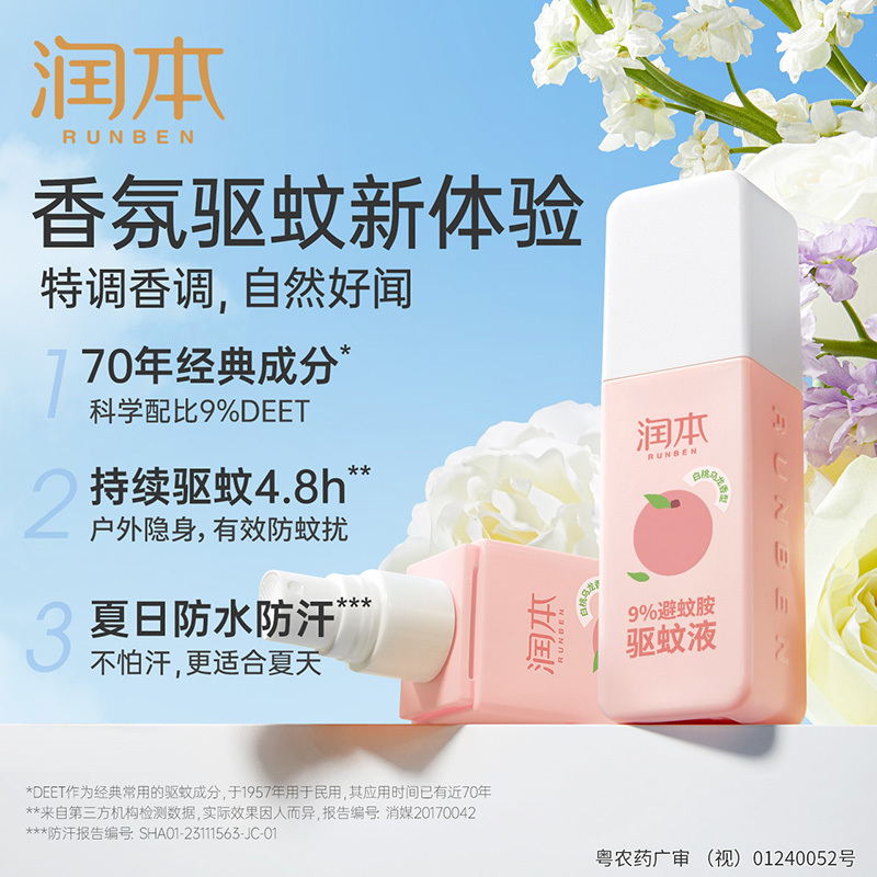 润本防蚊液9%避蚊胺驱蚊户外专用防蚊喷雾防虫叮咬花露水75ml 1瓶
