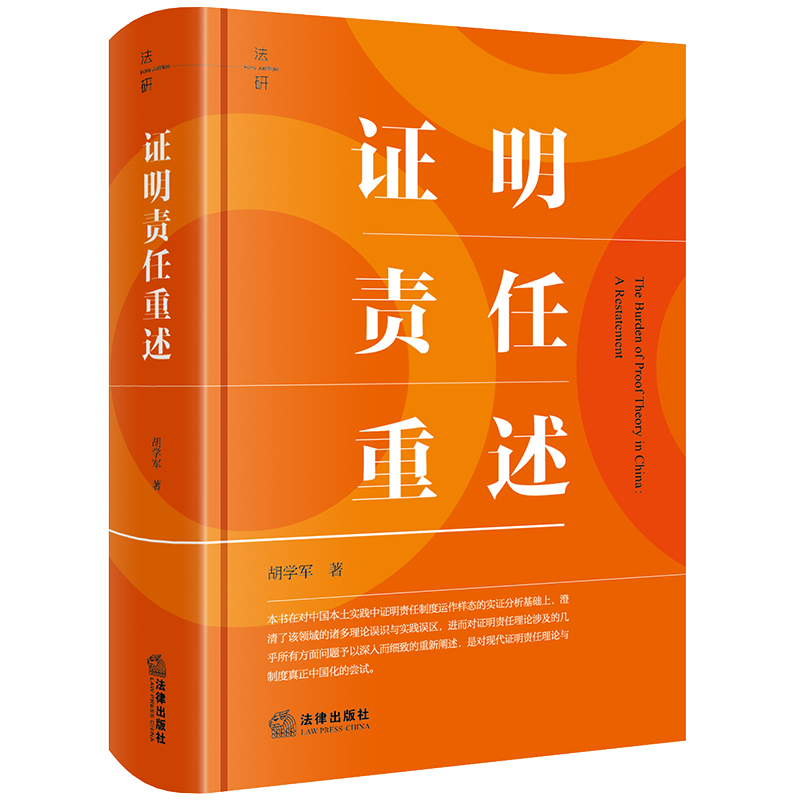 胡学军 法研系列 学术著作 正版 证明责任制度 证明责任重述 司法实践证明责任运用指引书 实证考察理论重述本土重构 2024年新书