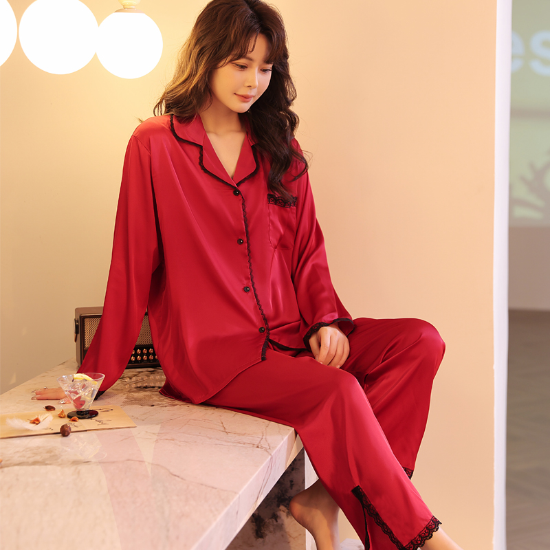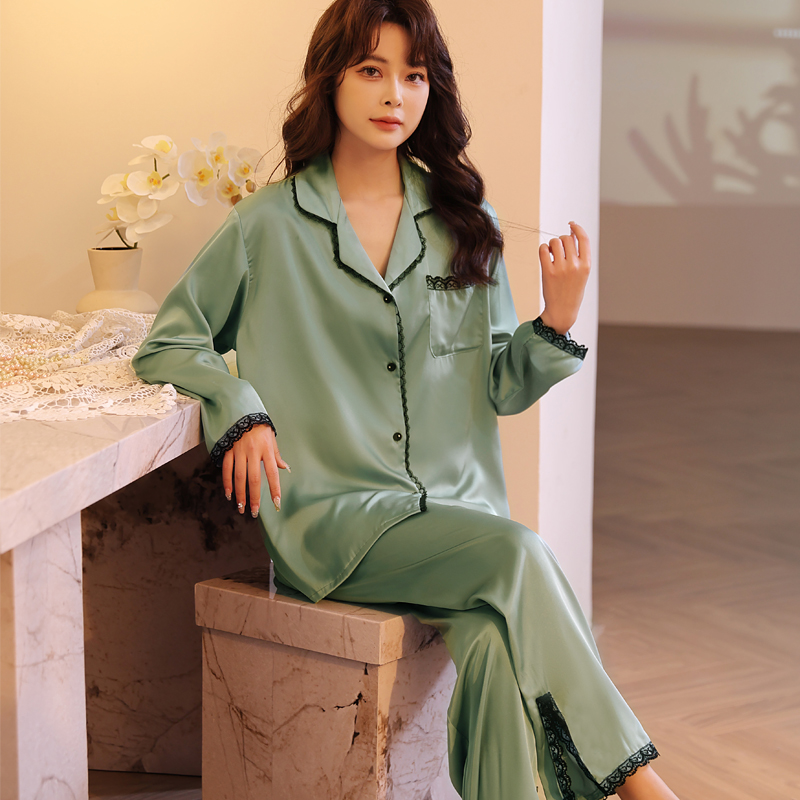 仿真丝家居服胖mm200斤女 春秋长袖 加肥加大码 冰丝绸睡衣两件套装