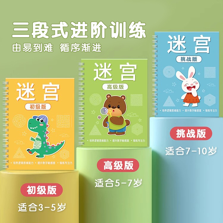 儿童迷宫专注力训练书6岁以上幼儿思维逻辑训练3 10岁早教益智走迷宫冒险注意力智力开发幼儿园小学生闯关游戏玩具高难度